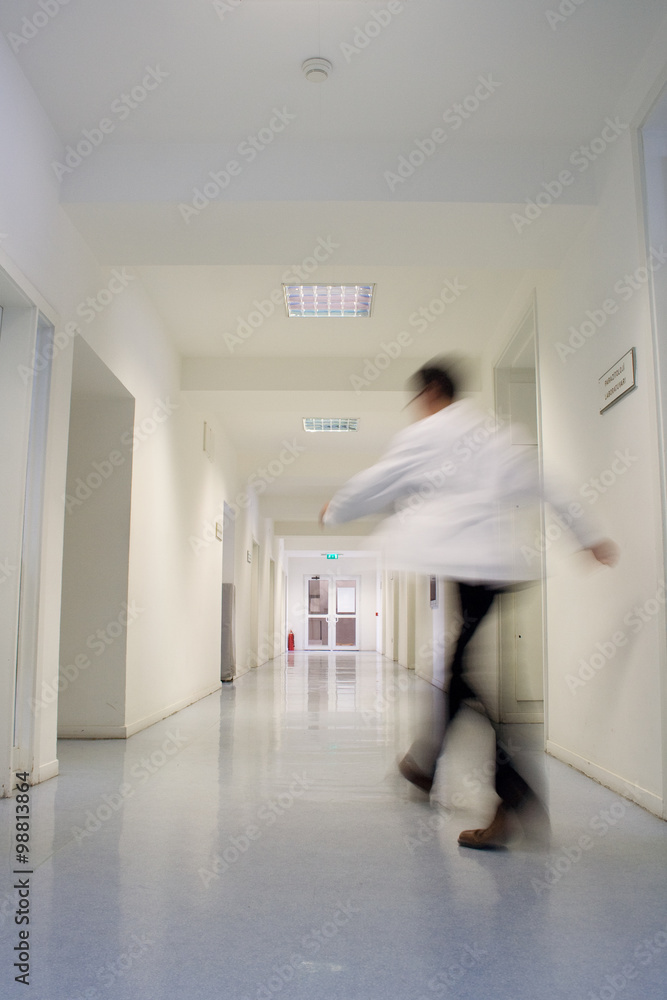 Motion Blurred Doctor Rushes Down Hospital Corridor Stock Photo Adobe Stock
